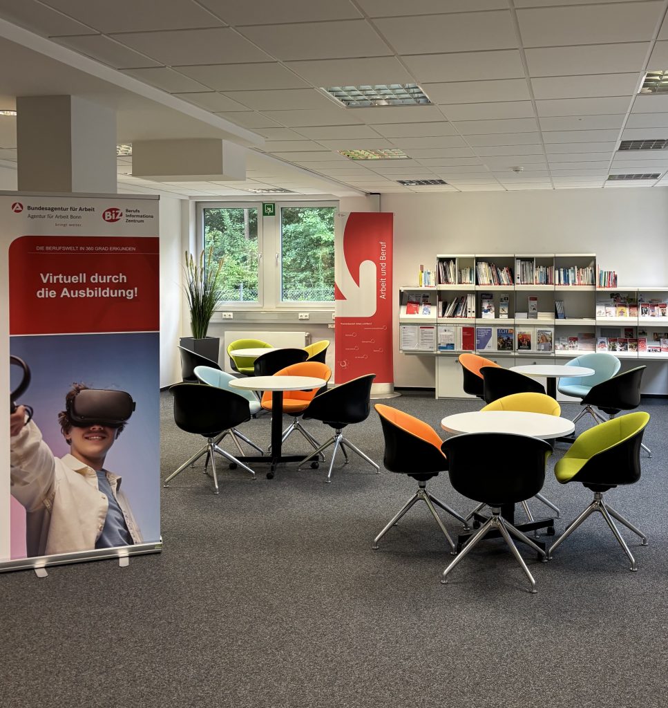 Das Berufsinformationszentrum (BiZ) Bonn hat sich im letzten Jahr sehr verändert. Die altbekannten Internet-PCs gehören nun der Vergangenheit an und wurden durch moderne iPads ersetzt. Auf den iPads kann man wie gewohnt Berufsauswahltests machen, Berufe recherchieren oder nach Studienplätzen, Ausbildungsstellen und Jobs suchen.